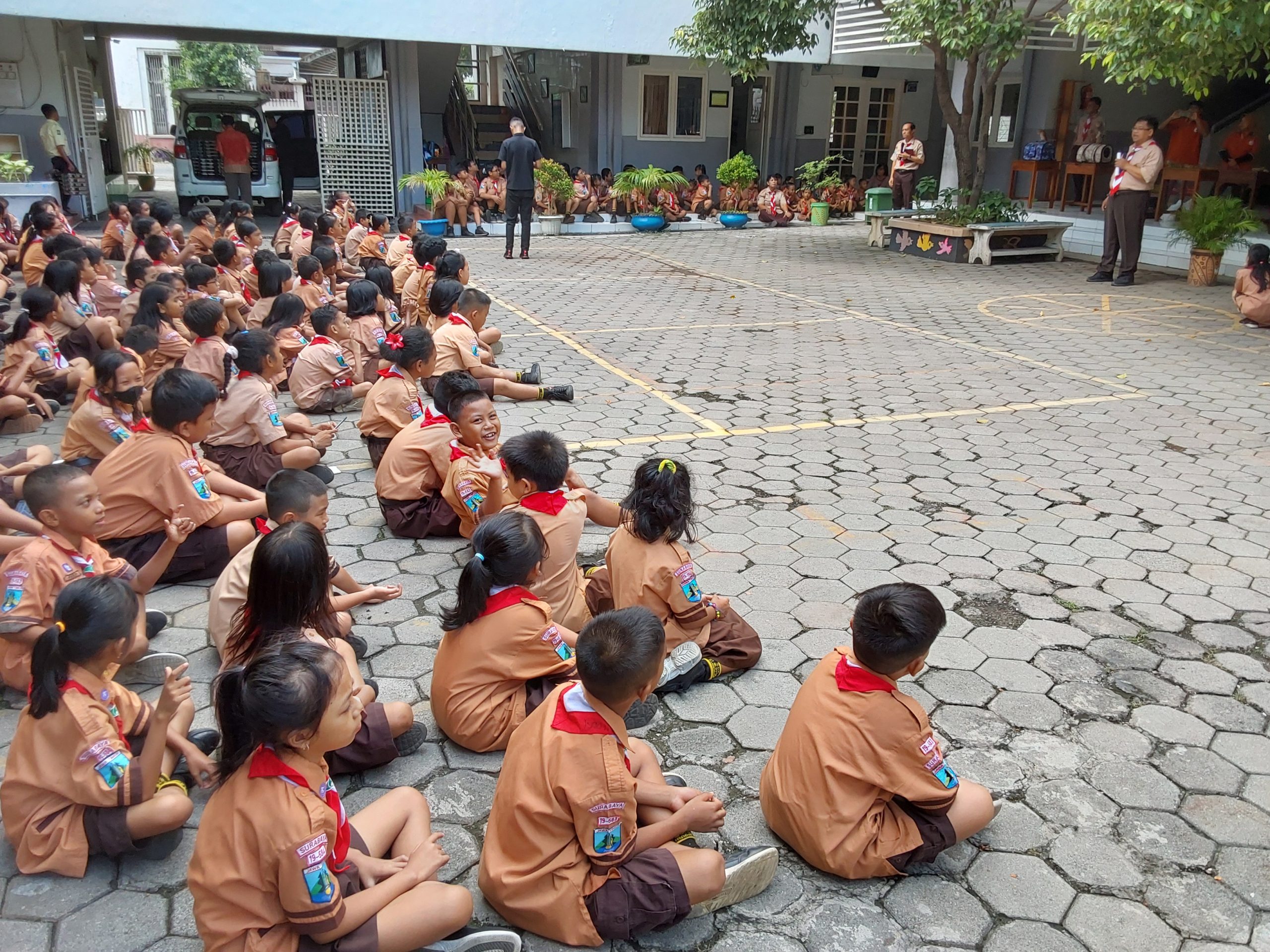 Pengarahan dan edukasi mengenai satwa di lapangan SDK St. Aloysius Surabaya (foto: Petrus Riski)